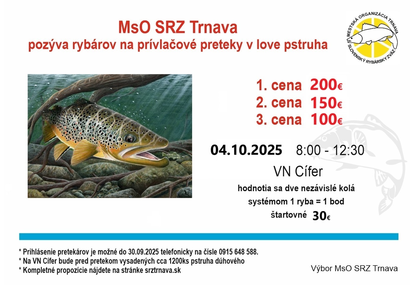 Riadne vyplnený záznam o dochádzke za rok 2025 je potrebné vhodiť do krabice umiestnenej pri vstupe do budovy Domu poľovníkov a rybárov v Trnave každý pracovný deň od 02.01.2026 do 15.01.2026 v čase 06:45 – 14:45 hod. Upozorňujeme, že záznam o dochádzke je potrebné odovzdať aj v prípade ak rybár nemal žiadny úlovok alebo sa na ryby ani nedostal. čítajte ďalej…